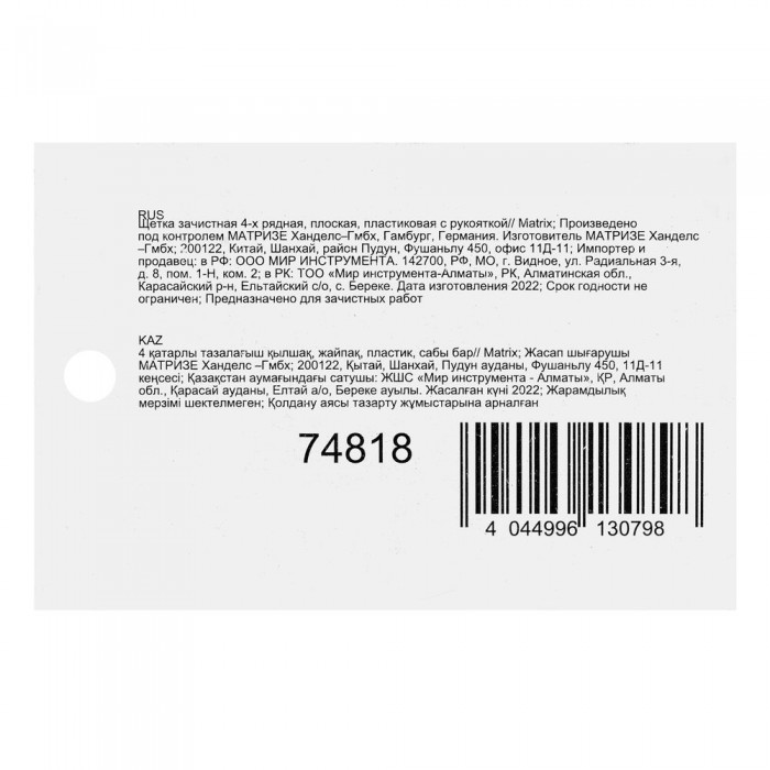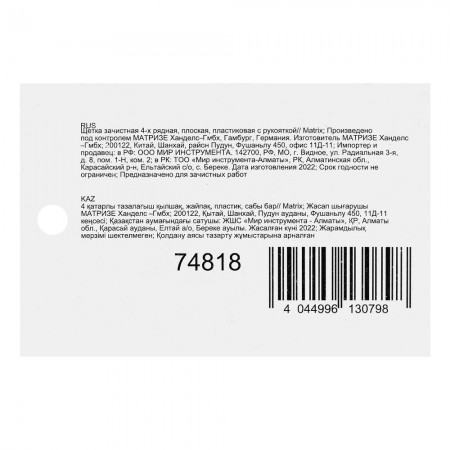 Щетка зачистная четырехрядная, плоская, пластиковая с рукояткой Matrix (74818)