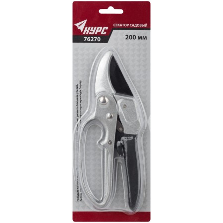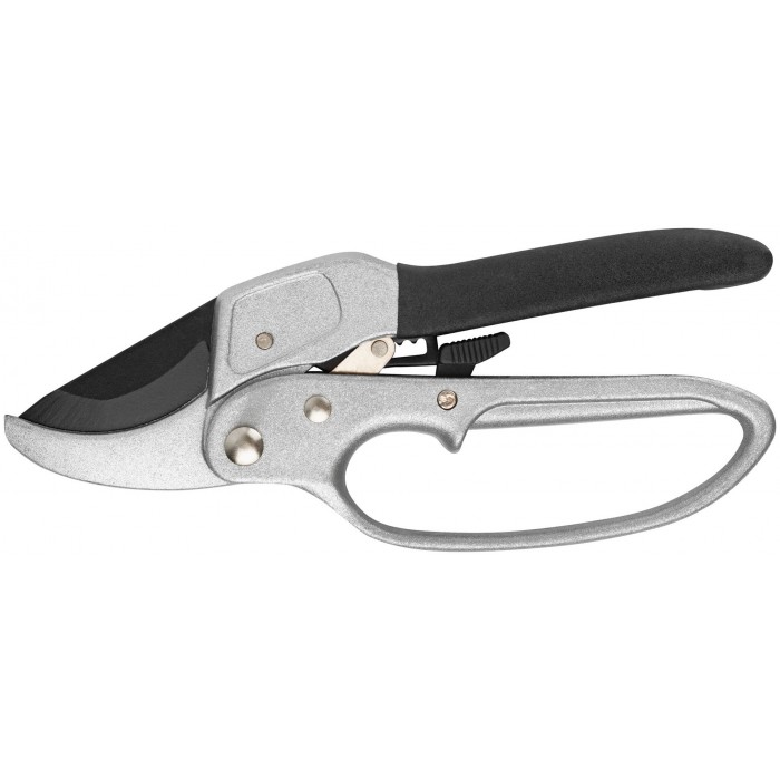 Режущая кромка встык с упорной наковальней. Храповый механизм дожима для большего усиления при резке. Для обрезания побегов и веток диаметром до 22 мм. Материал: корпус из алюминиевого сплава, лезвие из высокоуглеродистой стали с тефлоновым покрытием, ПВХ накладка на ручку.