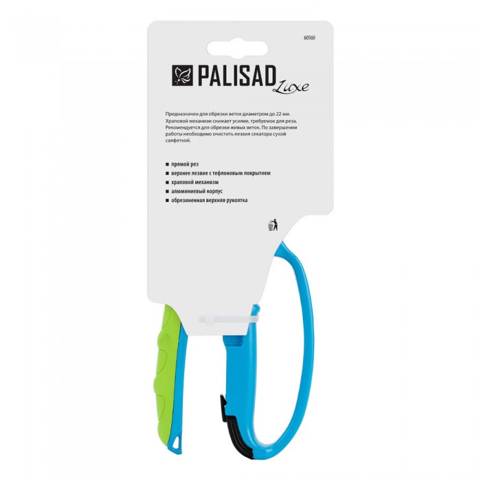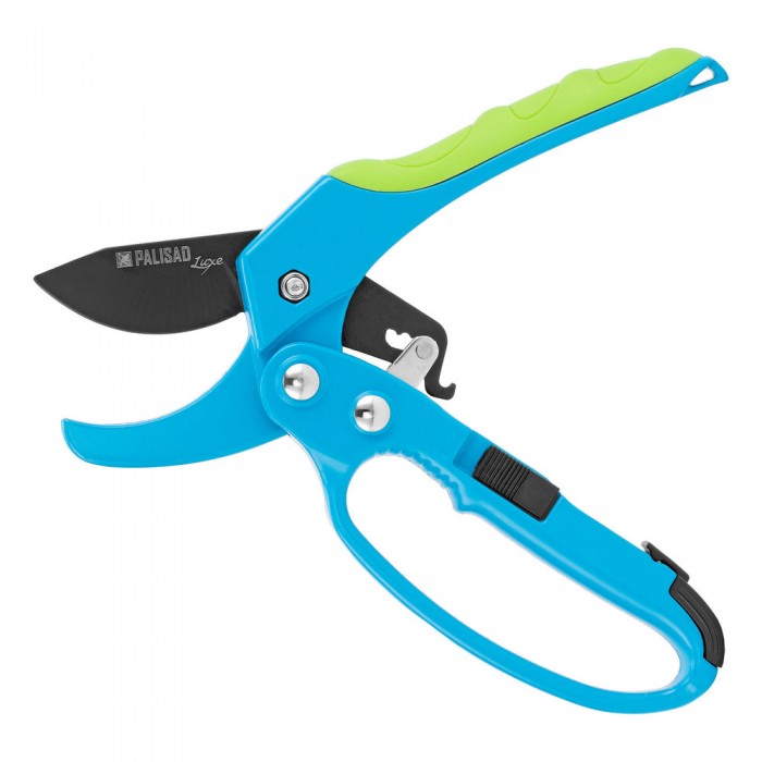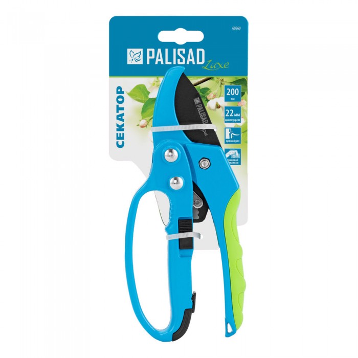 Секатор прямого реза, 200 мм, храповой механизм, металлические обaрезиненные рукоятки, Luxe, Palisd (60560)