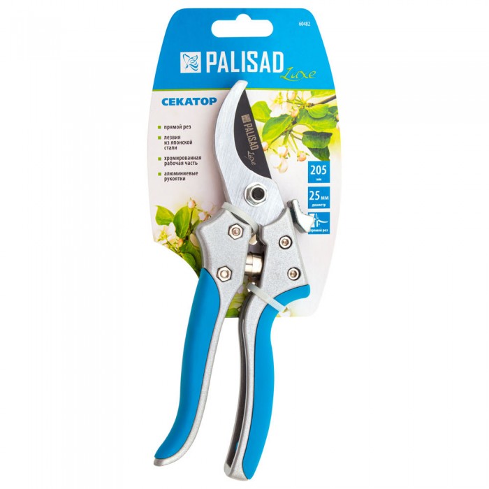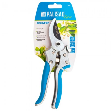 Секатор прямого реза, 205 мм, металлические обрезиненные рукоятки, Luxe, Palisad (60482)