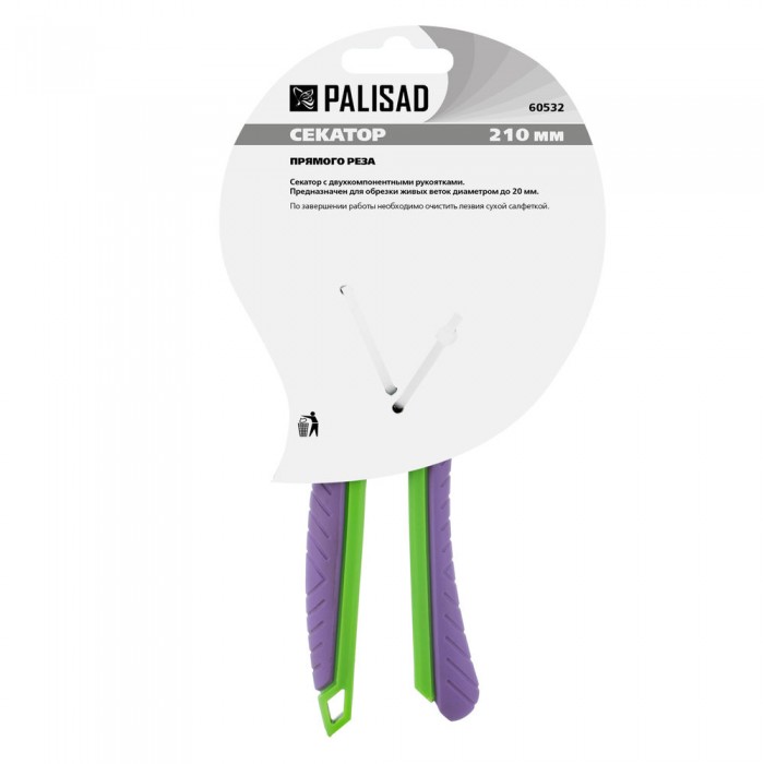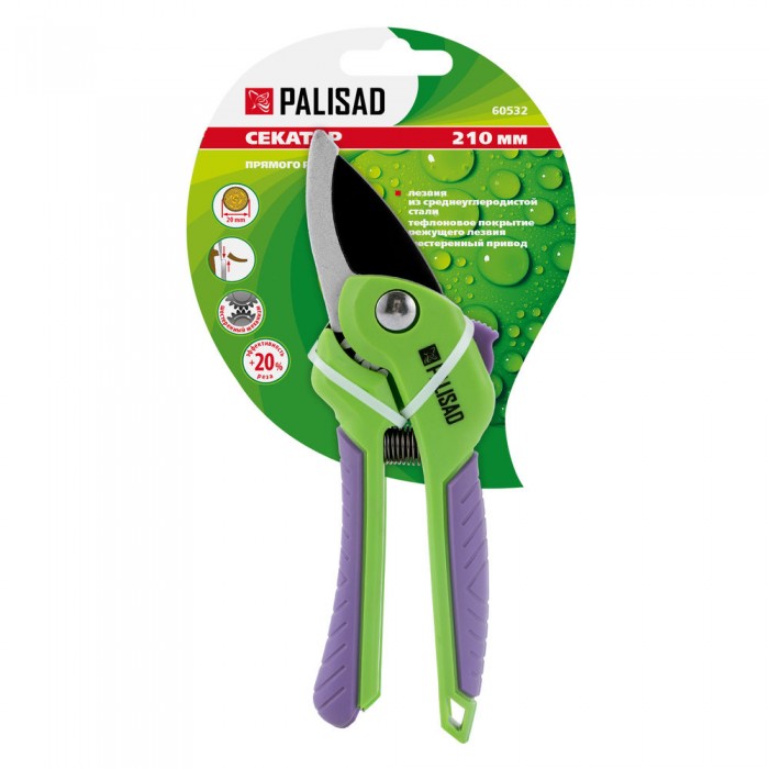Секатор прямого реза, 210 мм, шестеренный привод, двухкомпонентные рукоятки, Palisad (60532)
