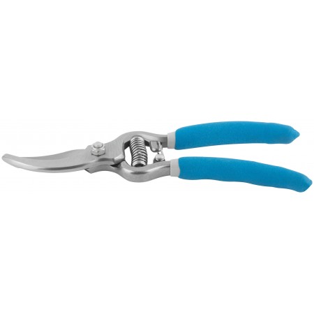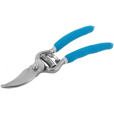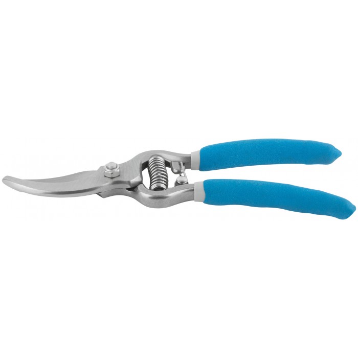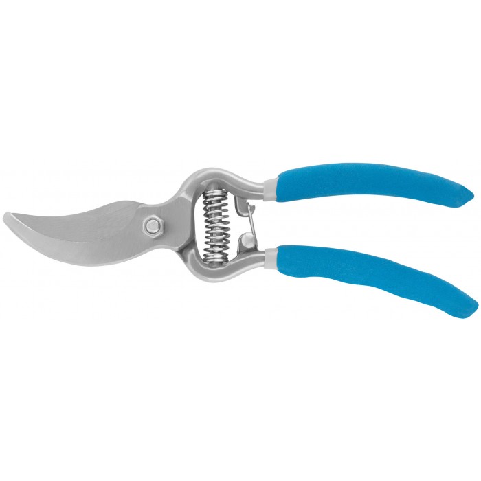 Цельнокованый. Усиленная проволочная пружина, режущие кромки внахлест. Для обрезания побегов и веток толщиной до 25 мм. Материал: инструментальная сталь, ПВХ покрытие ручек. Упаковка: блистер.