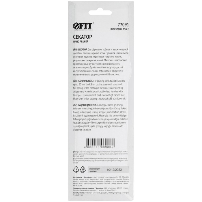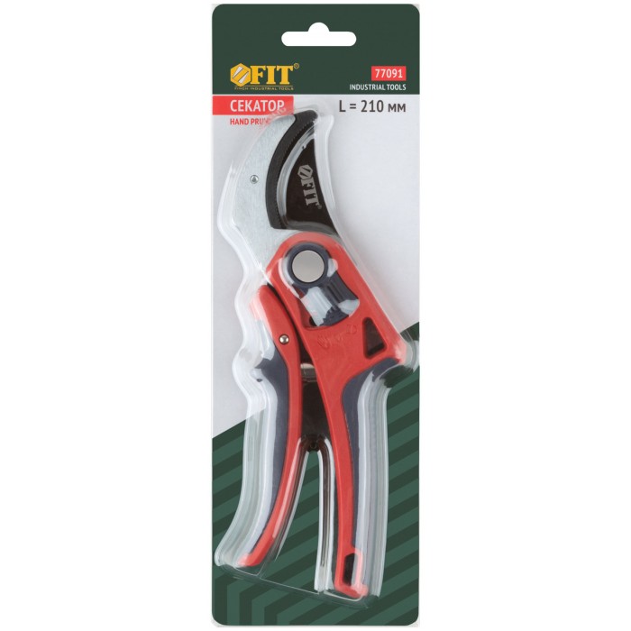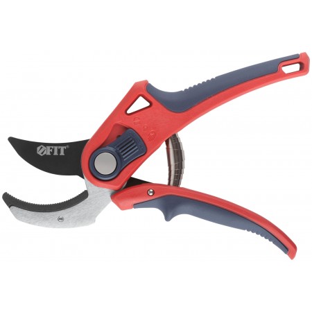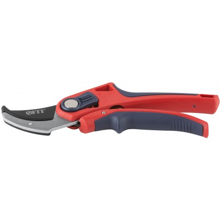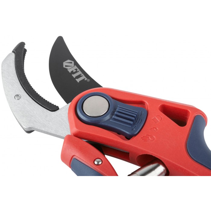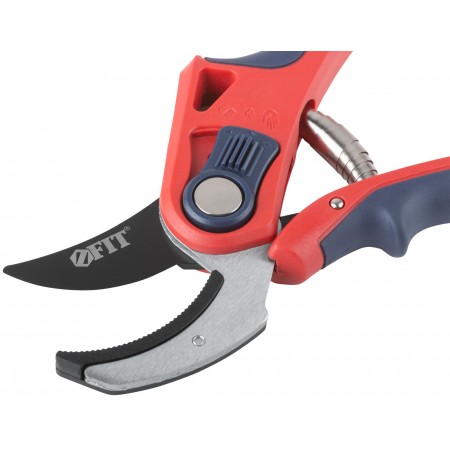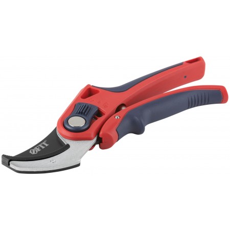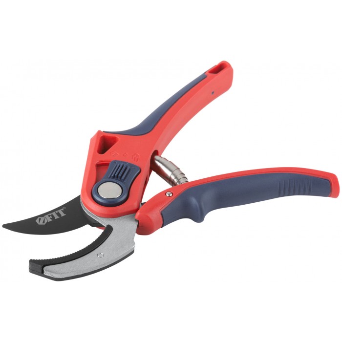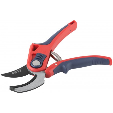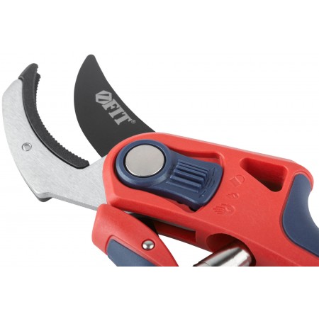 Профи. С ленточной пружиной. Режущие кромки встык с упорной наковальней. Для обрезания побегов и веток диаметром до 20 мм. Материал: лезвие из высокоуглеродистой инструментальной стали с тефлоновым покрытием, пластиковые прорезиненные ручки, усиленные фибергласом, переключатель из ударопрочного ABS пластика. Упаковка: блистер.