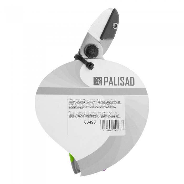 Секатор с наковальней, 170 мм, металлические обрезиненные рукоятки, Palisad (60490)