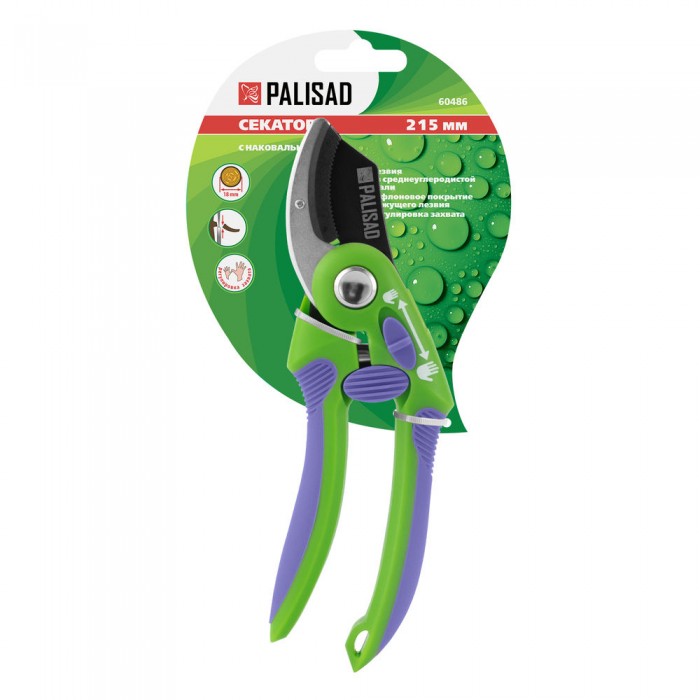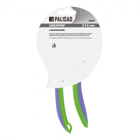 Секатор с наковальней, 215 мм, регулировка захвата, двухкомпонентные рукоятки, Palisad (60486)