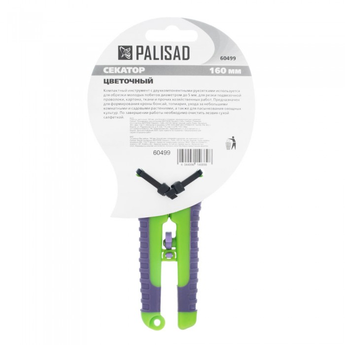 Секатор цветочный, 160 мм, для бонсай и топиария, двухкомпонентные рукоятки, Palisad (60499)