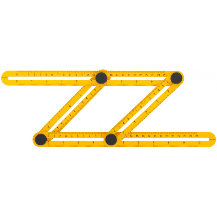 Для разметки сложных форм и переноса углов на размечиваемую поверхность. Шкала в сантиметрах и дюймах. Материал: сталь, пластик.