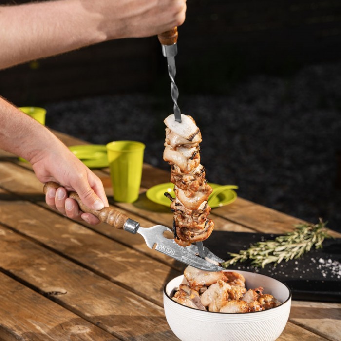 Шампур плоский, 600х10х2,5 мм, с деревянной рукояткой, нерж. сталь, Camping// Palisad (69750)