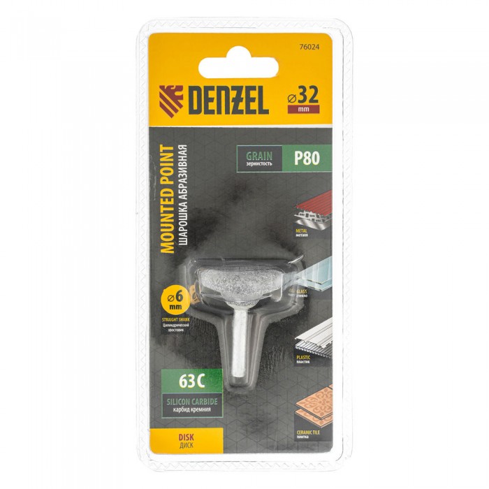 Шарошка абразивная, диск, 32 x 12 мм, для дрели, хвостовик d6 мм, 63С Denzel (76024)