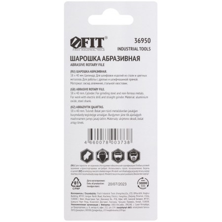 Шарошка абразивная (по металлу), хвостовик 6 мм, цилиндр 18 х 40 мм (36950)