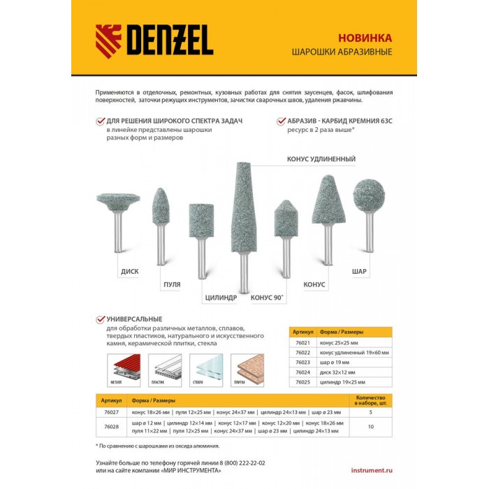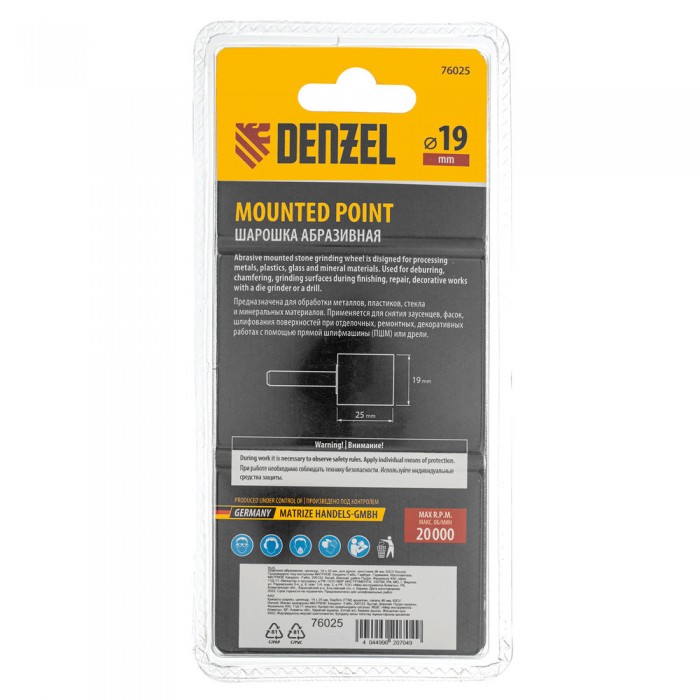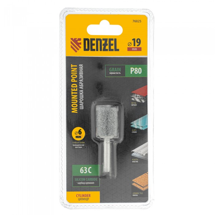 Шарошка абразивная, цилиндр, 19 x 25 мм, для дрели, хвостовик d6 мм, 63С Denzel (76025)