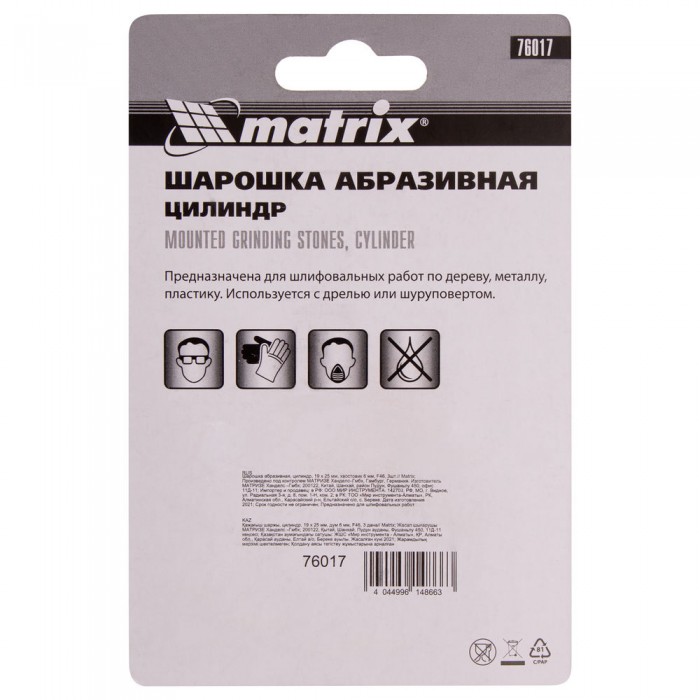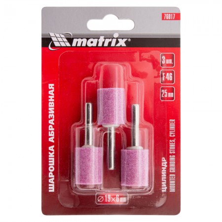 Шарошка абразивная, цилиндр, 19 x 25 x 6 мм, F46, 3 шт Matrix (76017)