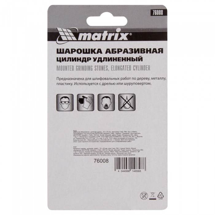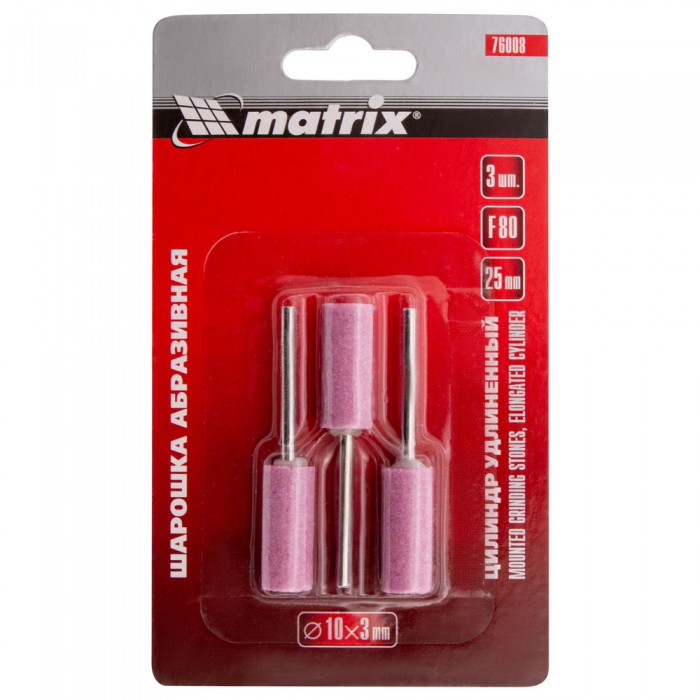 Шарошка абразивная, цилиндр удлиненный, 10 x 25 x 3 мм, F80.3 шт Matrix (76008)