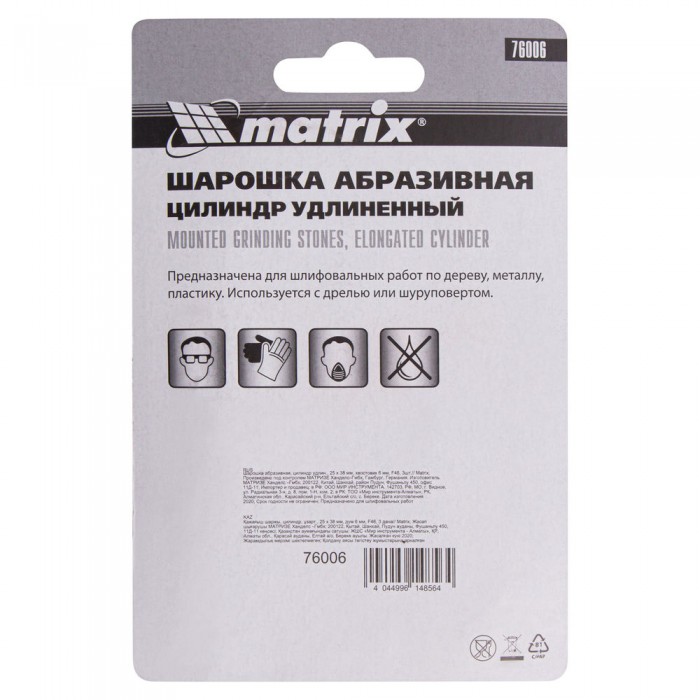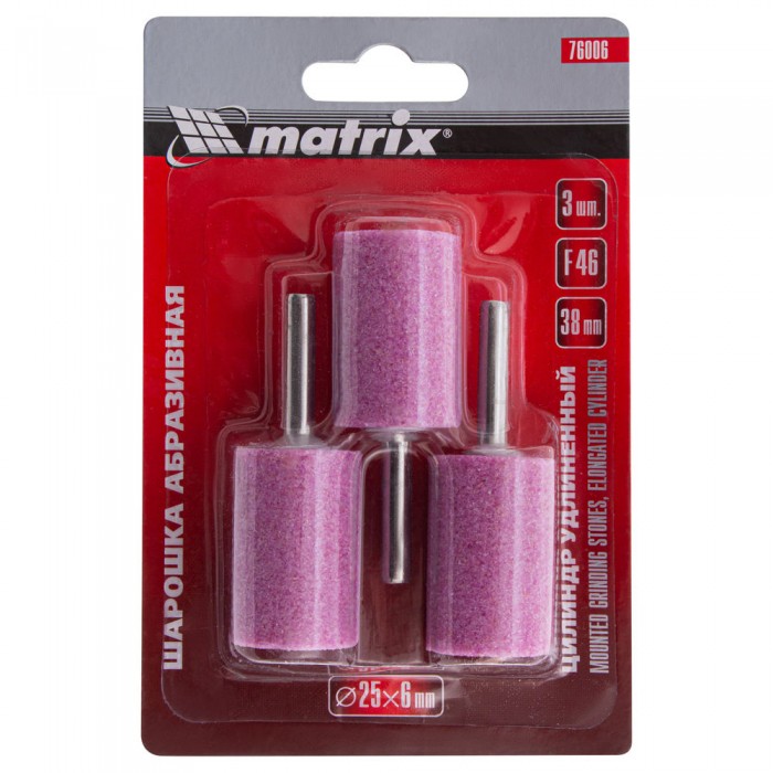 Шарошка абразивная, цилиндр удлиненный, 25 x 38 x 6 мм, F46, 3 шт Matrix (76006)