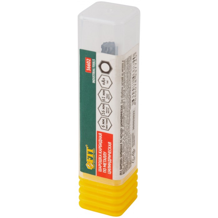 Тип ''А''. Цилиндрическая. Для обработки деталей из металла и других материалов с твердостью до 60 HRC. Цилиндрический хвостовик 6 мм. Материал: легированная инструментальная сталь, рабочая часть из карбида вольфрама ВК8. Упаковка: пластиковая туба.