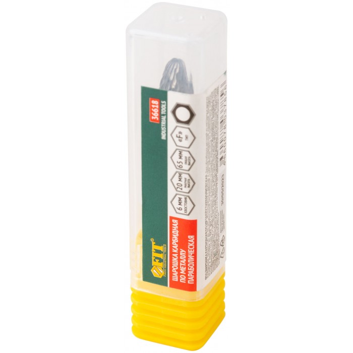 Тип ''F''. Параболическая. Для обработки деталей из металла и других материалов с твердостью до 60 HRC. Цилиндрический хвостовик 6 мм. Материал: легированная инструментальная сталь, рабочая часть из карбида вольфрама ВК8. Упаковка: пластиковая туба.
