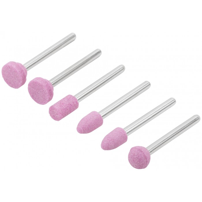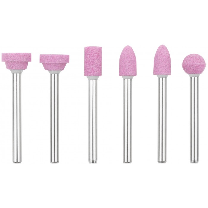 Для гравировальной машины. В наборе 6 шт. Предназначены для шлифовки изделий из стали и цветных металлов. Зернистость: P120. D хвостовика=3,1 мм. Материал: хвостовик из инструментальной стали, корунд. Упаковка: блистер.