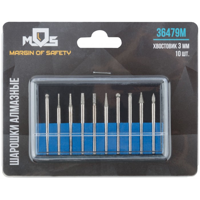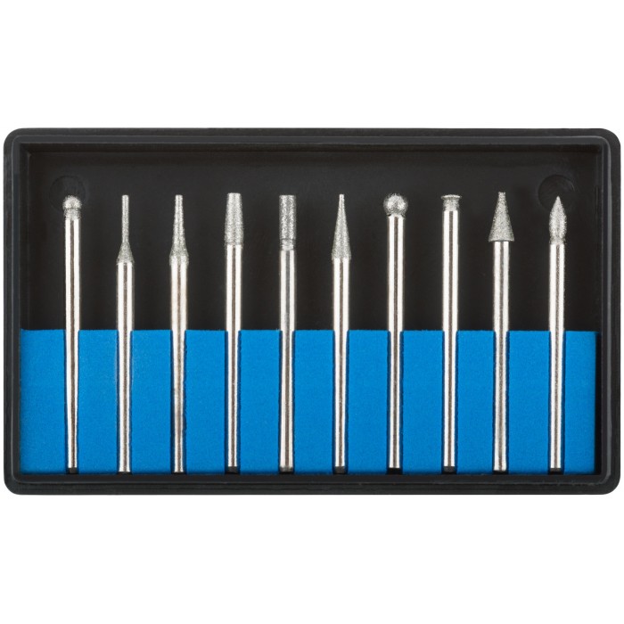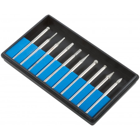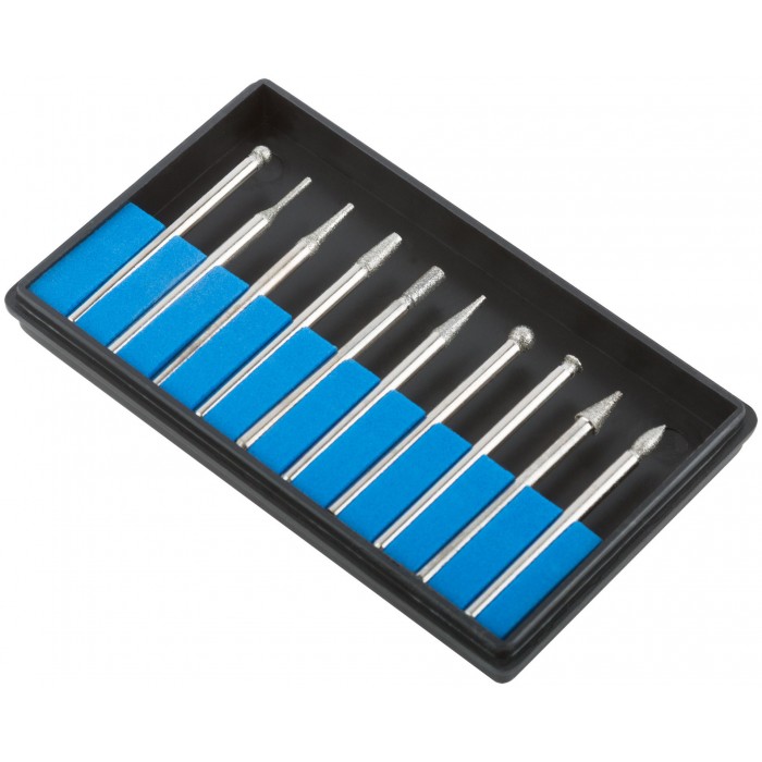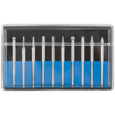 Шарошки, усиленная сталь с алмазным напылением, штифт диам. 3 мм, 10 шт. (36479М)