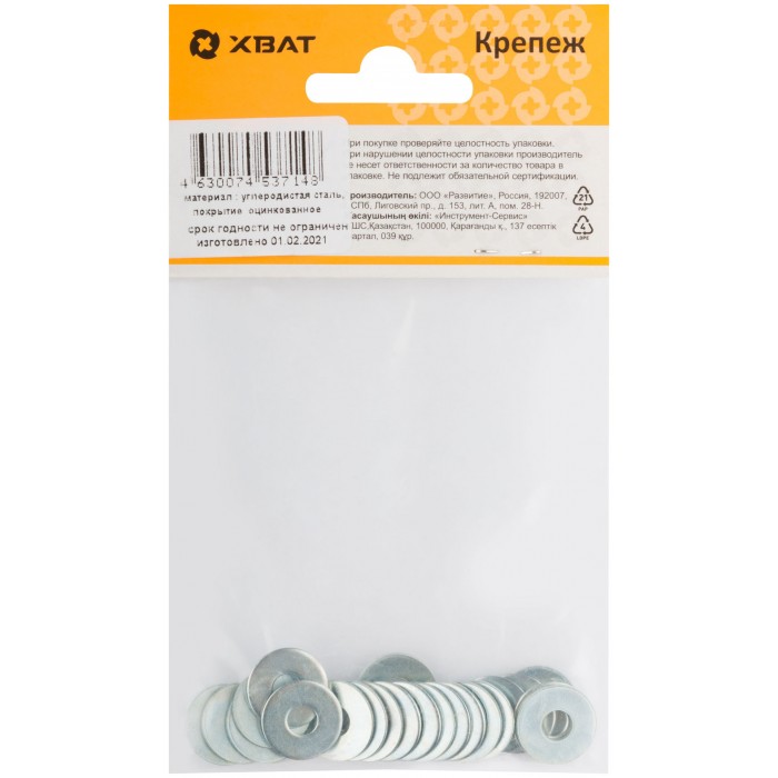 Оцинкованная. Рекомендуется для использования совместно с болтами, винтами и другими крепежными элементами. Применяется для уменьшения давления на опорную поверхность. Используется при работе с тонколистовыми материалами. Наружный диаметр шайбы приблизительно равен трем внутренним диаметрам.
