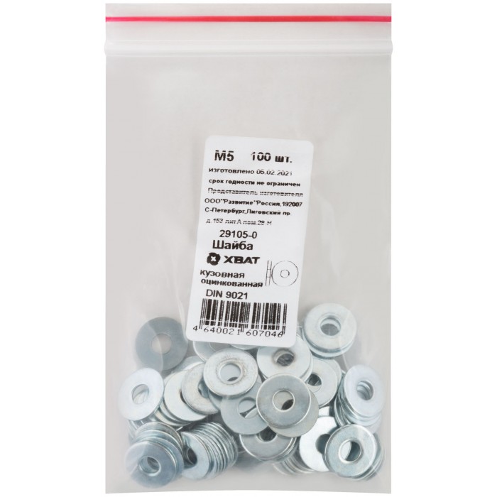 Шайба кузовная оцинкованная М5 100 шт DIN 9021 Фасовка (29105-0)