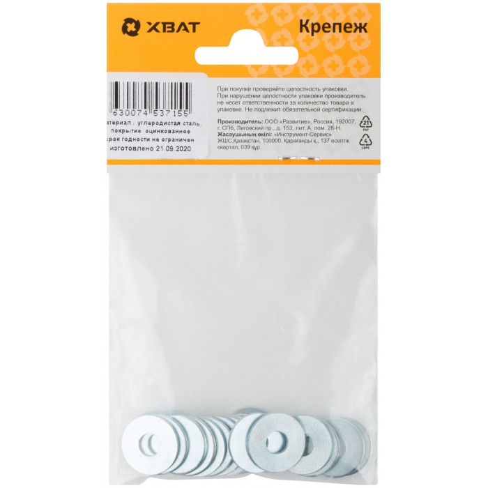 Оцинкованная. Рекомендуется для использования совместно с болтами, винтами и другими крепежными элементами. Применяется для уменьшения давления на опорную поверхность. Используется при работе с тонколистовыми материалами. Наружный диаметр шайбы приблизительно равен трем внутренним диаметрам.