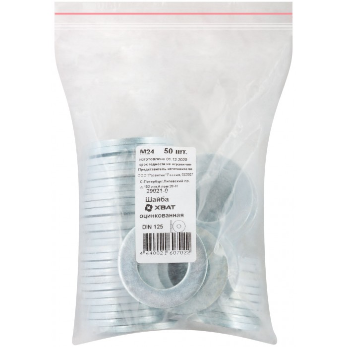 Шайба оцинкованная DIN 125 М24 50 шт Фасовка (29021-0)