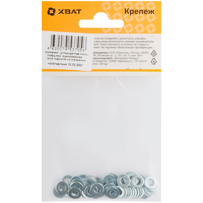 Шайба плоская стандартная. Сделана из конструкционной оцинкованной стали, оцинкованная. Применяется для уменьшения давления на опорную поверхность.