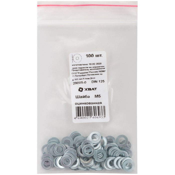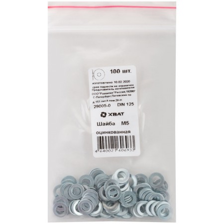 Шайба оцинкованная М5 DIN 125 100 шт Фасовка (29005-0)