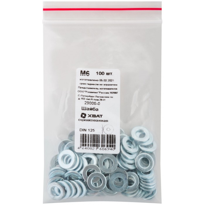 Шайба оцинкованная М6 DIN 125 100 шт Фасовка (29006-0)