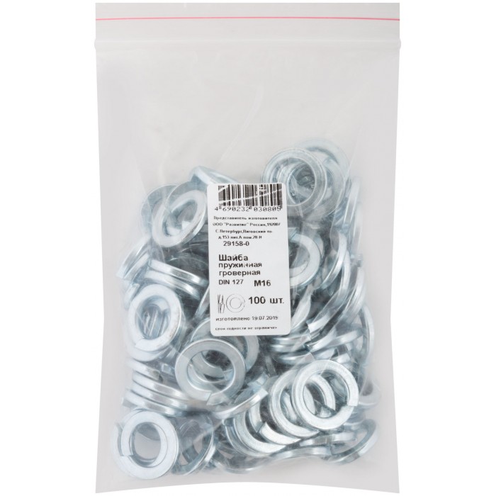 Шайба пружинная гроверная М16 100 шт. DIN 127 Фасовка (29158-0)