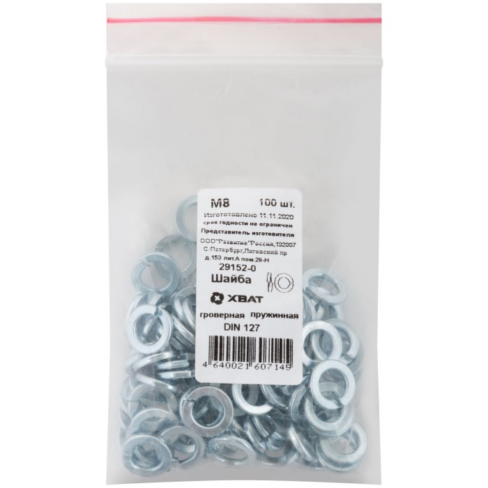 Шайба пружинная гроверная М8 100 шт. DIN 127 Фасовка (29152-0)