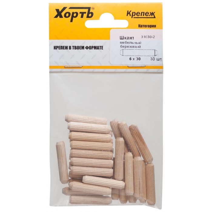 Шкант мебельный 6 х 30 березовый (фасовка 30 шт.) (31030-2)