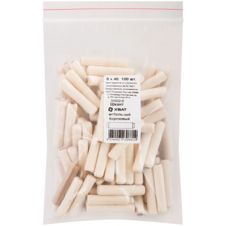 Шкант изготовлен из березы. Применяется для сборки мебели и деревянных конструкций.