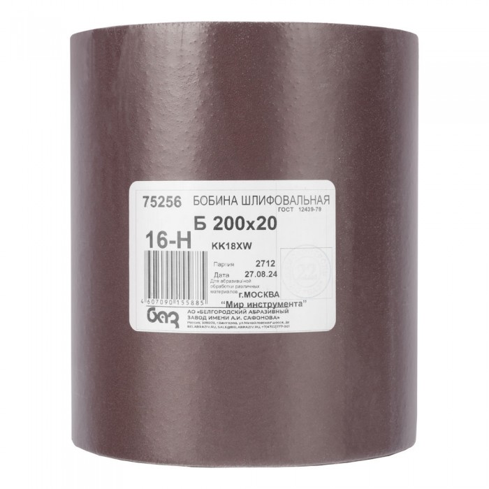 Шкурка на тканевой основе, KK18X W, зернистость 16Н(Р 80) бобина 200 мм х 20 м, водостойкая, "БАЗ" (75256)