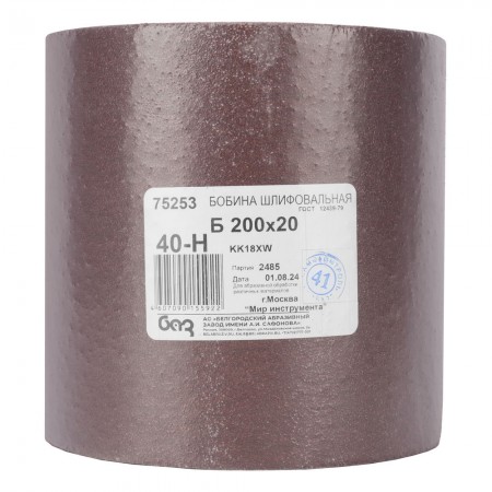 Шкурка на тканевой основе, KK18X W, зернистость 40Н(Р 40) бобина 200мм х 20 м, водостойкая, "БАЗ" (75253)
