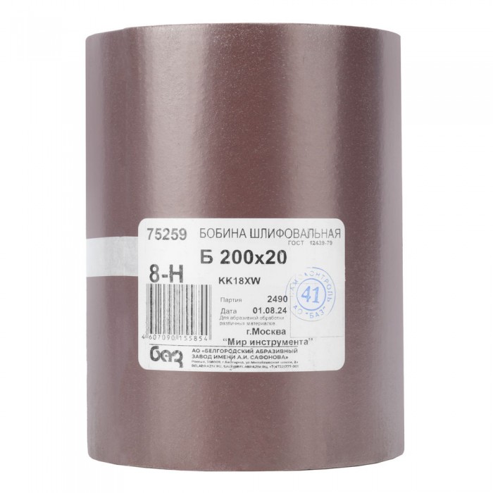 Шкурка на тканевой основе, KK18X W, зернистость 8Н(P 150) бобина 200 мм х 20 м, водостойкая, "БАЗ" (75259)
