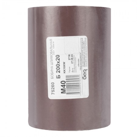 Шкурка на тканевой основе, KK19X W, зернистость М40(P 400) бобина 200 мм х 20 м, водостойкая, "БАЗ" (75260)