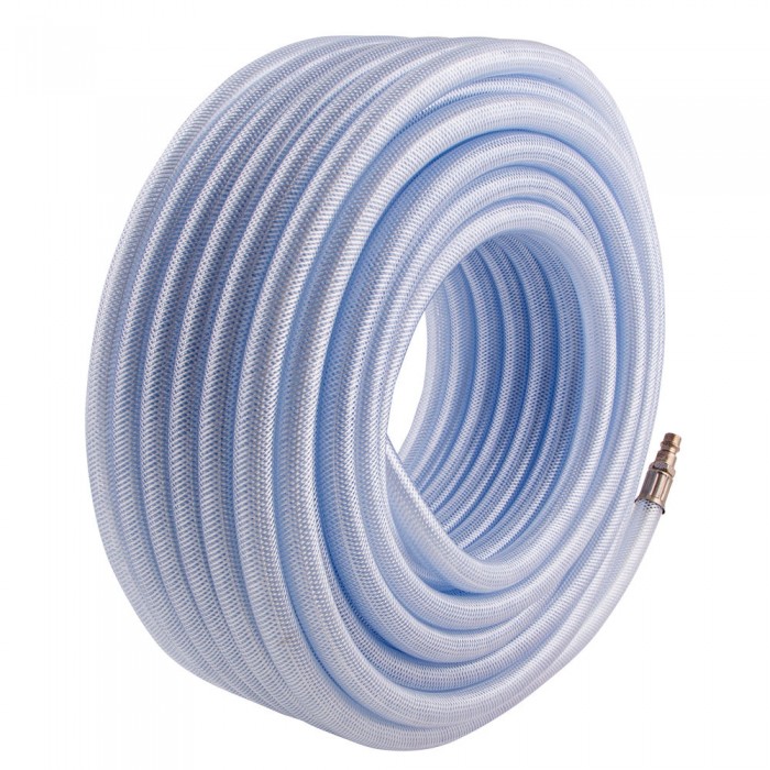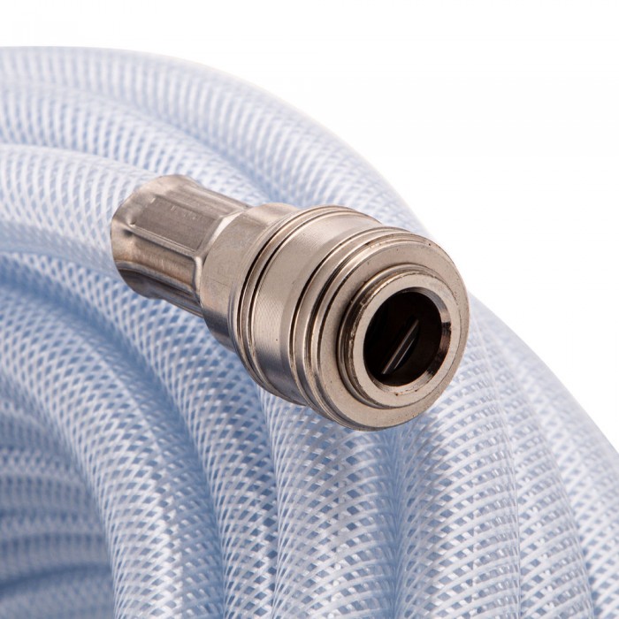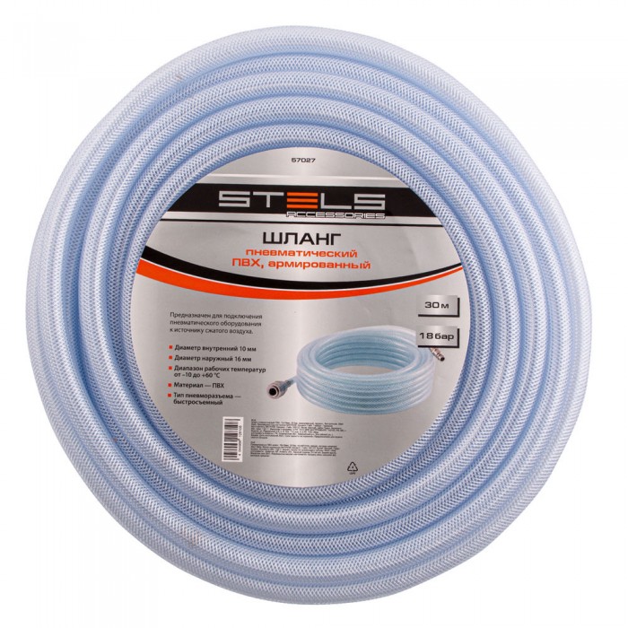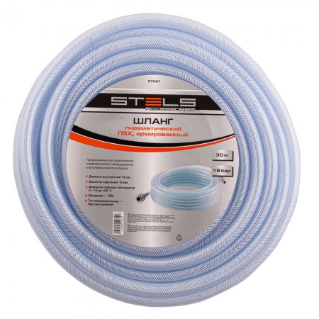 Шланг пневматический ПВХ, 10 x 16 мм, 18 бар, армированный, прозрачный, быстросъемное соединение, 30 м Stels (57027)