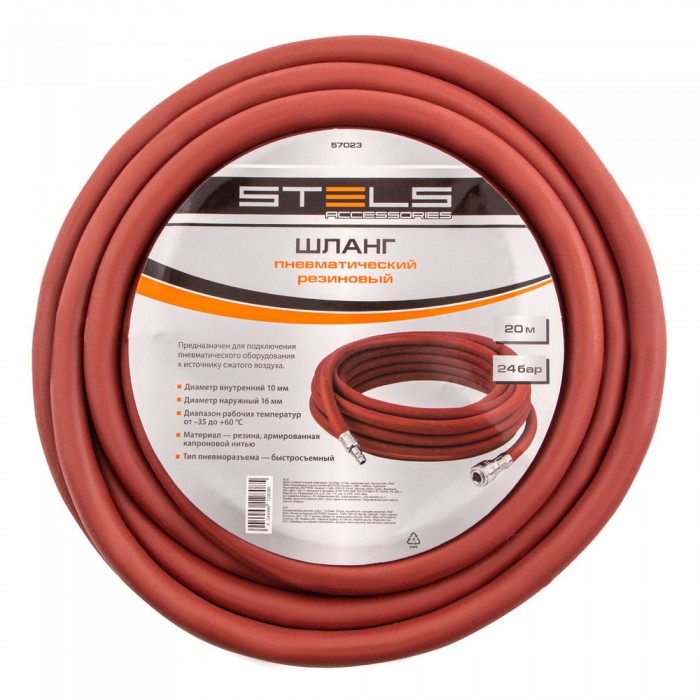 Шланг пневматический резиновый, 10 x 16 мм, 24 бар, армированный, быстросъемное соединение, 20 м Stels (57023)