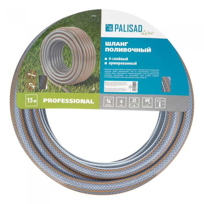 Шланг поливочный 4-х слойный, армированный "Professional", 3/4" 15 м, Luxe Palisad (67464)