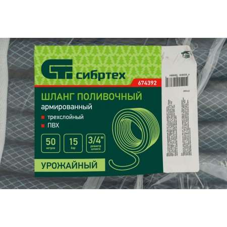 Шланг поливочный армированный ПВХ 3/4", 50 м, урожайный Сибртех (674392)