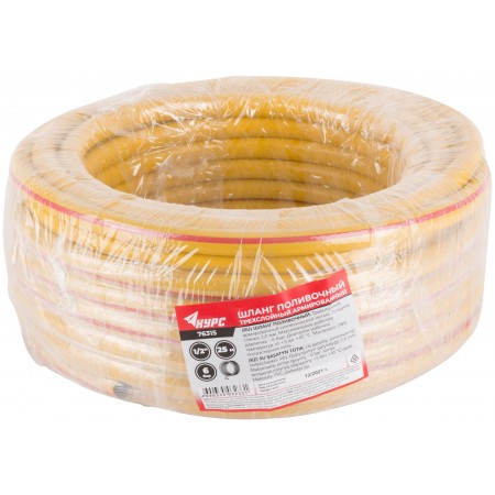 Шланг поливочный трехслойный армированный, желтый 1/2" х 2,0 мм х 25 м (76315)