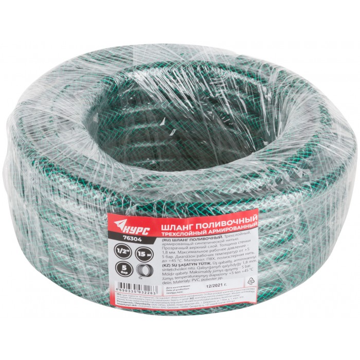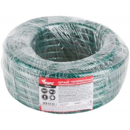 Шланг поливочный трехслойный армированный, зеленый 1/2" х 1,8 мм х 15 м (76304)