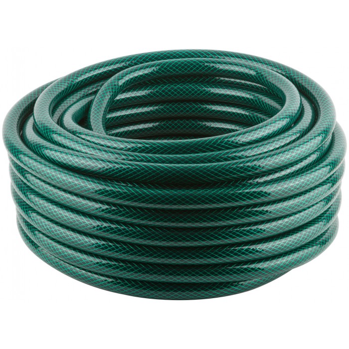 Трехслойный, армированный синтетической нитью. Предназначен для полива, перекачки и прочих работ с жидкостями. Максимальное рабочее давление: 1/2'' - 5 бар, 3/4'' - 4 бар, 1'' - 3 бар. Диапазон рабочих температур от +5 до +45°С. Материал: ПВХ, полиэстерная нить.