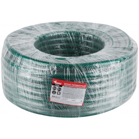Трехслойный, армированный синтетической нитью. Предназначен для полива, перекачки и прочих работ с жидкостями. Максимальное рабочее давление: 1/2'' - 5 бар, 3/4'' - 4 бар, 1'' - 3 бар. Диапазон рабочих температур от +5 до +45°С. Материал: ПВХ, полиэстерная нить.