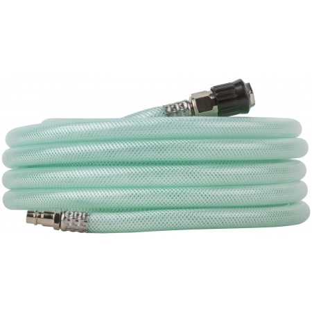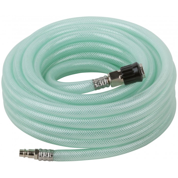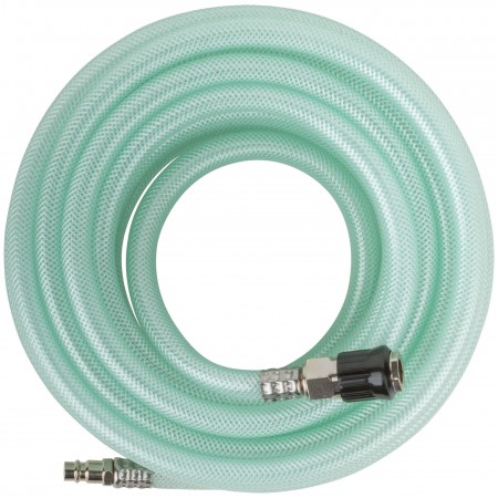 Прямой, износостойкий, усиленный, армированный полимерными нитями. Шланг-удлинитель с коннекторами европейского типа. Соединение быстросъемное 1/4''. Диаметр внутренний - 10 мм, диаметр внешний - 15 мм. Рабочее давление - 6 бар, максимальное давление - 20 бар. Диапазон рабочих температур от -5 до +65 °С. Материал: армированный ПВХ.