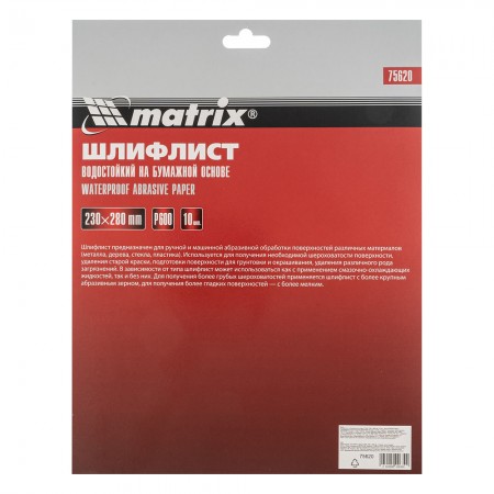 Шлифлист на бумажной основе, P 600, 230 х 280 мм, 10 шт, водостойкий Matrix (75620)