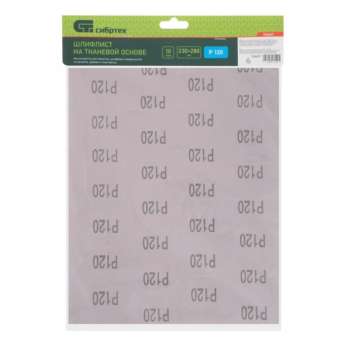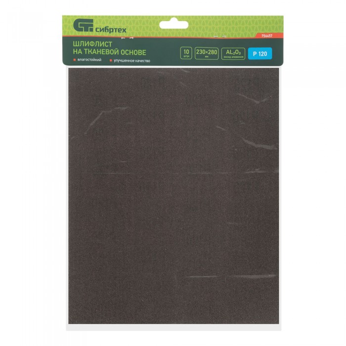 Шлифлист на тканевой основе, P 120, 230 х 280 мм, 10 шт, влагостойкий Сибртех (756457)