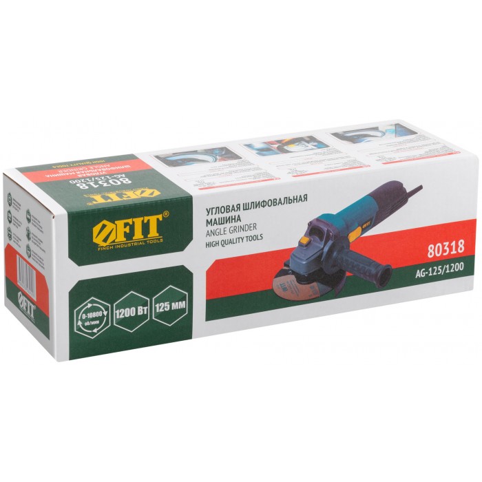 Шлифмашина угловая 1200 Вт; 0-10800 об/мин; КлК 125 мм; 2,1 кг; армир. ротор; мал.; рез. накл.; коробка (80318)