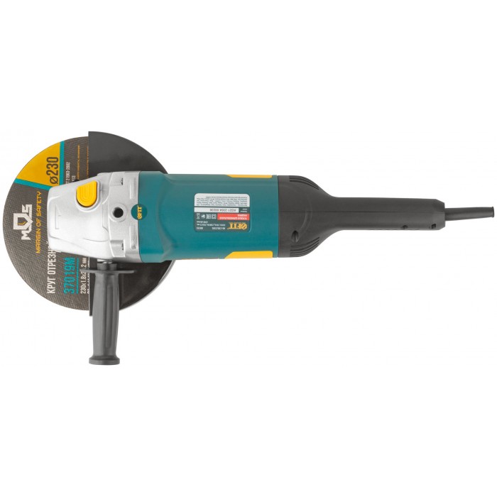 2500 Вт; 230/22 мм; 6500 об/мин; М14; 14 A, 7,1 кг, коробка. Устройство плавного пуска, блокировка включения, блокировка шпинделя, трехпозиционная дополнительная рукоятка, быстрый допуск к щеткам, армированный ротор.